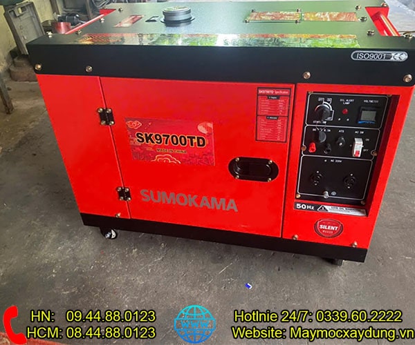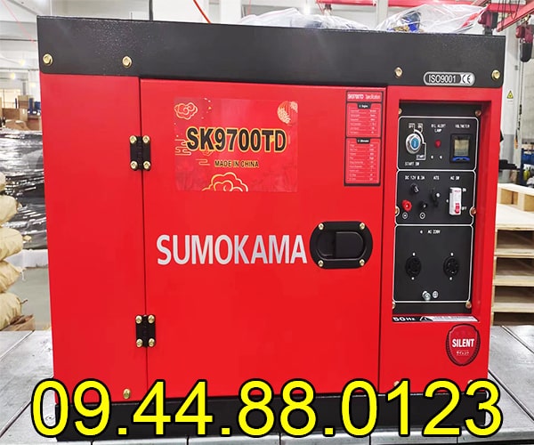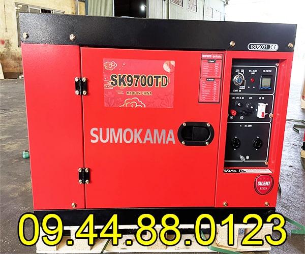 - Máy phát điện chạy dầu Sumokama 6KW SK9700TD Cách âm có vỏ chống ồn, cuộn điện dây đồng 100%, sản xuất theo tiêu chuẩn ISO9001 là giải pháp tiết kiệm nhiên liệu và hiệu quả cho gia đình và doanh nghiệp