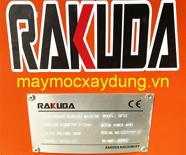 - Máy uốn đai Rakuda GF32 380V có khả năng uốn được thanh sắt, thép có đường kính phi 6 đến phi 28