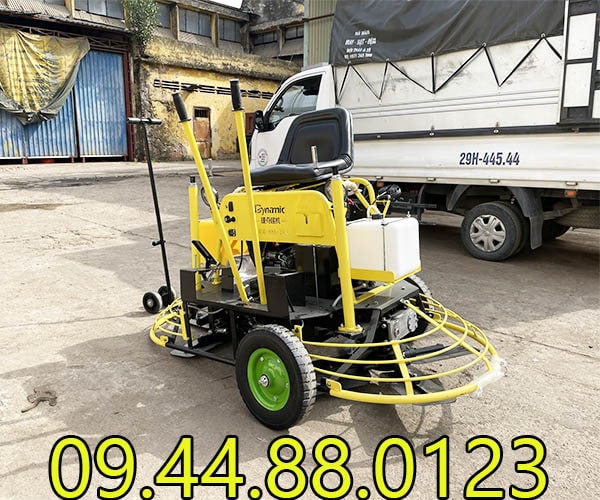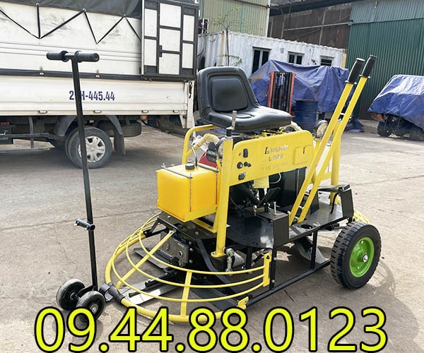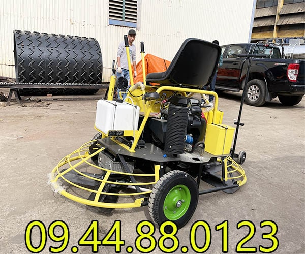 - Máy xoa nền lồng đôi thiết kế để ngồi lái, giúp thi công thuận tiện, tiết kiệm thời gian, sức lực.