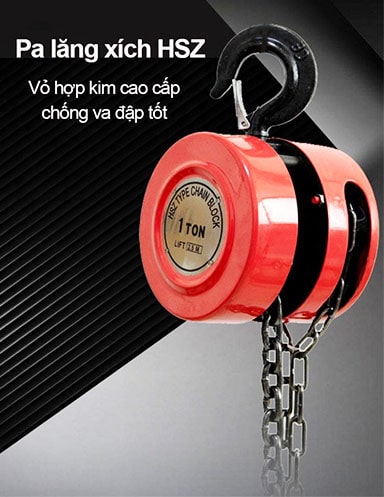 Pa lăng xích kéo tay hiệu HSZ là hệ thiết bị nâng hạ vật nặng theo phương pháp thủ công. Loại pa lăng này được dùng rộng rãi do tính cơ động cao, gọn nhẹ, phù hợp cho mọi điều kiện làm việc và đặc biệt thích hợp cho những nơi không có nguồn điện. Dễ sử dụng, lực kéo nhẹ, dễ vận chuyển.