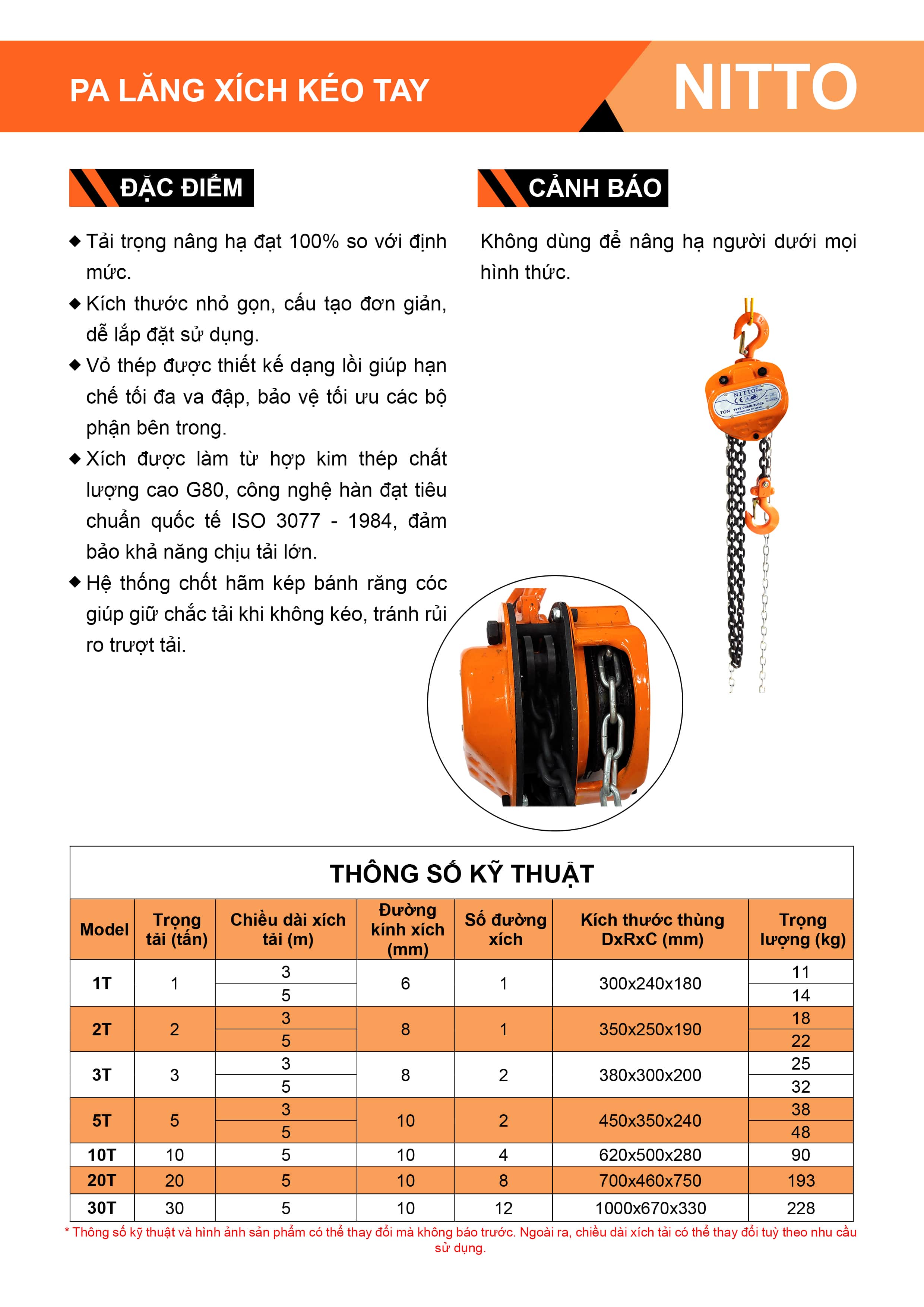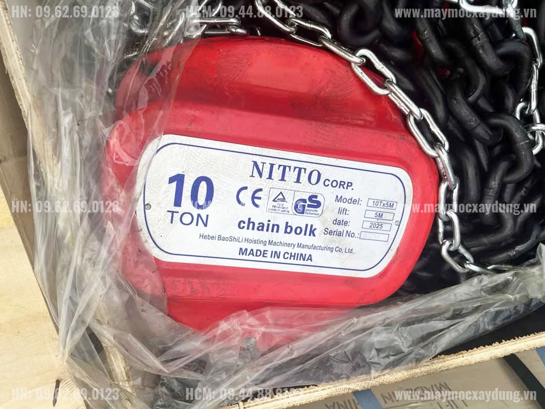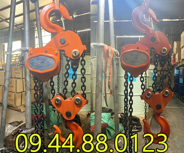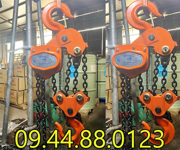 - Pa lăng xích kéo tay Nitto 10 tấn 5m đạt tải trọng nâng hạ đạt 100% so với định mức