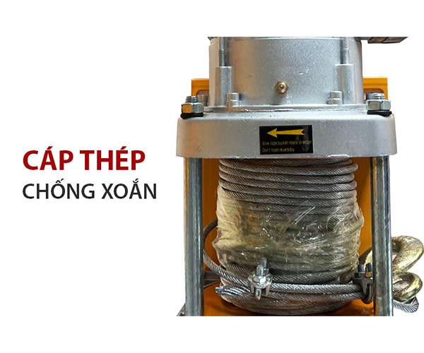 - Tời có thể sử dụng đi cáp đơn hoặc cáp đôi, cáp đơn trọng tải nâng tối đa là 400kg, cáp đôi trọng tải nâng tối đa là 800kg