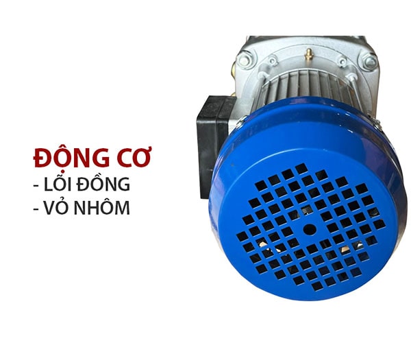 - Lõi động cơ được quấn 100% dây đồng, cho khả năng hoạt động mạnh mẽ, tăng sức nâng kéo, công suất lên tới 2.2KW. Lõi động cơ được bọc vỏ nhôm, bên trong trang bị thêm quạt tản nhiệt, giúp giảm tối đa nhiệt độ hoạt động của động cơ.