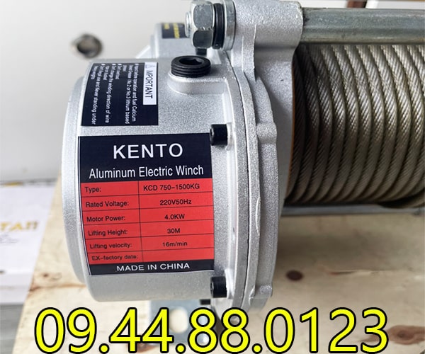 - Tời điện đa năng Kento KCD750-1500 220V 30m 16 mét/phút có trọng tải nâng theo nhà sản xuất từ 750-1500kg. Tải trọng đạt thực tế 70% so với nhà sản xuất đưa ra.