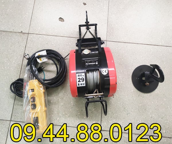 - Dây cáp 5 ly chịu lực và chiều dài nâng 29 mét được gắn kèm theo 1 móc xoay an toàn 360 độ đáp ứng mọi nhu cầu nâng cho quý khách hàng