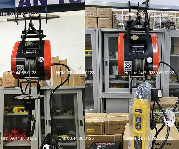 - Có thể hoạt động trên nguồn điện tiêu chuẩn trong nhà 220V, nguồn điện khá phổ biến khắp vùng lãnh thổ cả nước. Tời điện mini này hoạt động ở điều kiện điện áp 1 pha.